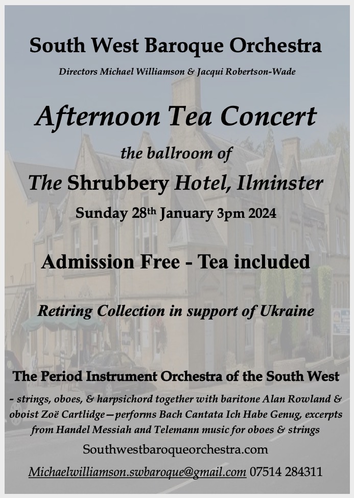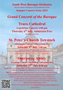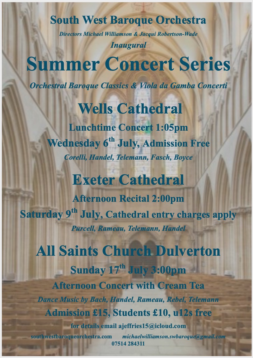 South West Baroque Orchestra will be at the Bristol Early Music Festival on Sunday 10th May, 5pm playing movements from Sémélé by Marin Marais and with the choir, performing Dies Irae by Jean-Baptiste Lully. Previous Concerts